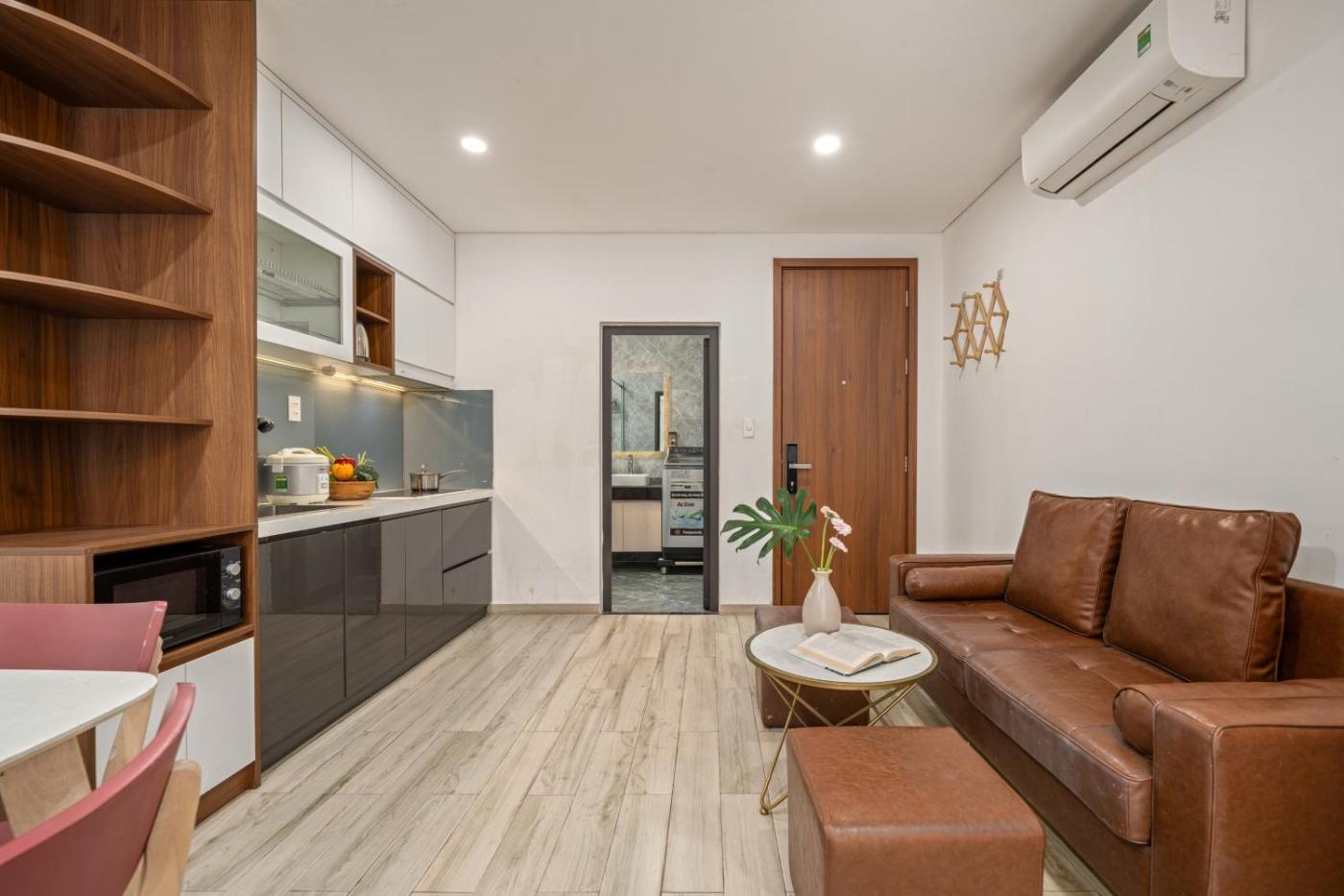 One-Bedroom Apartment. This apartment consists of 1 living room, 1 separate bedroom and 1 bathroom with a walk-in shower and free toiletries. The fully equipped kitchen features a stovetop, a refrigerator, kitchenware and a microwave. This air-conditioned apartment comprises a dining area, a flat-screen TV with cable channels a washing machine and a balcony. The unit offers 1 bed. ;